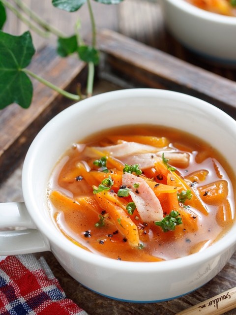 人参とベーコンのバターコンソメスープ