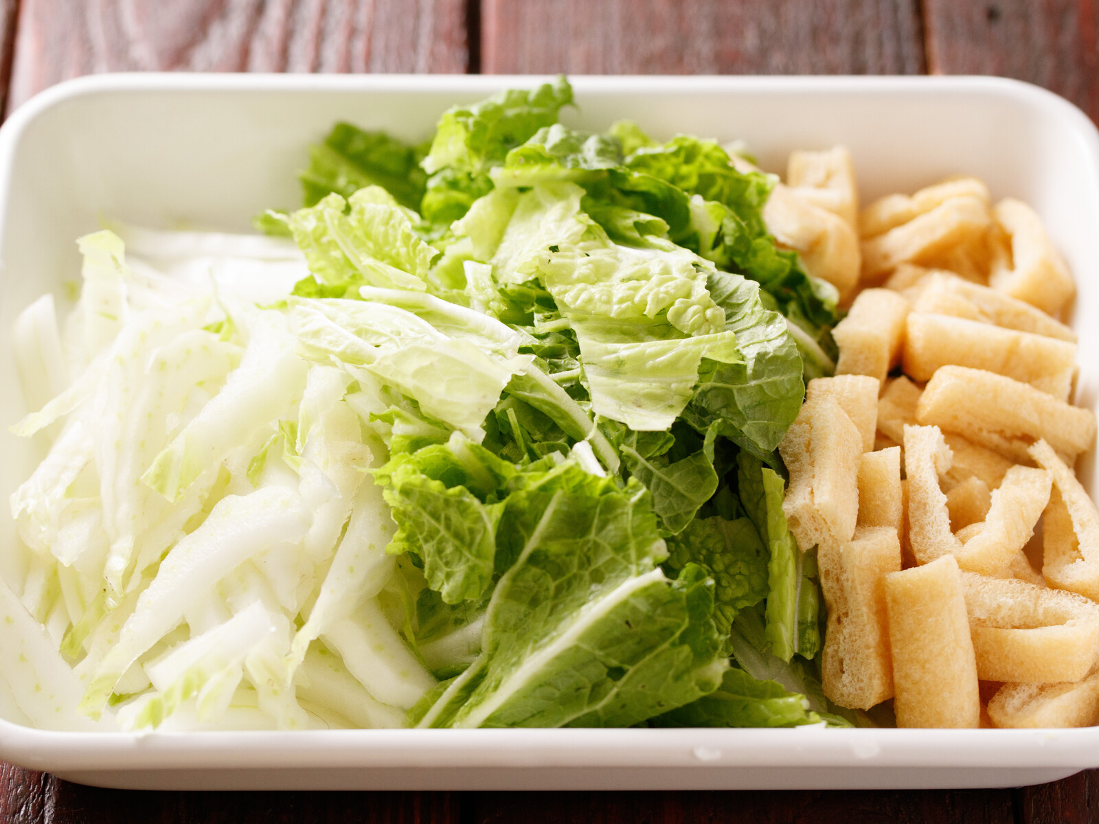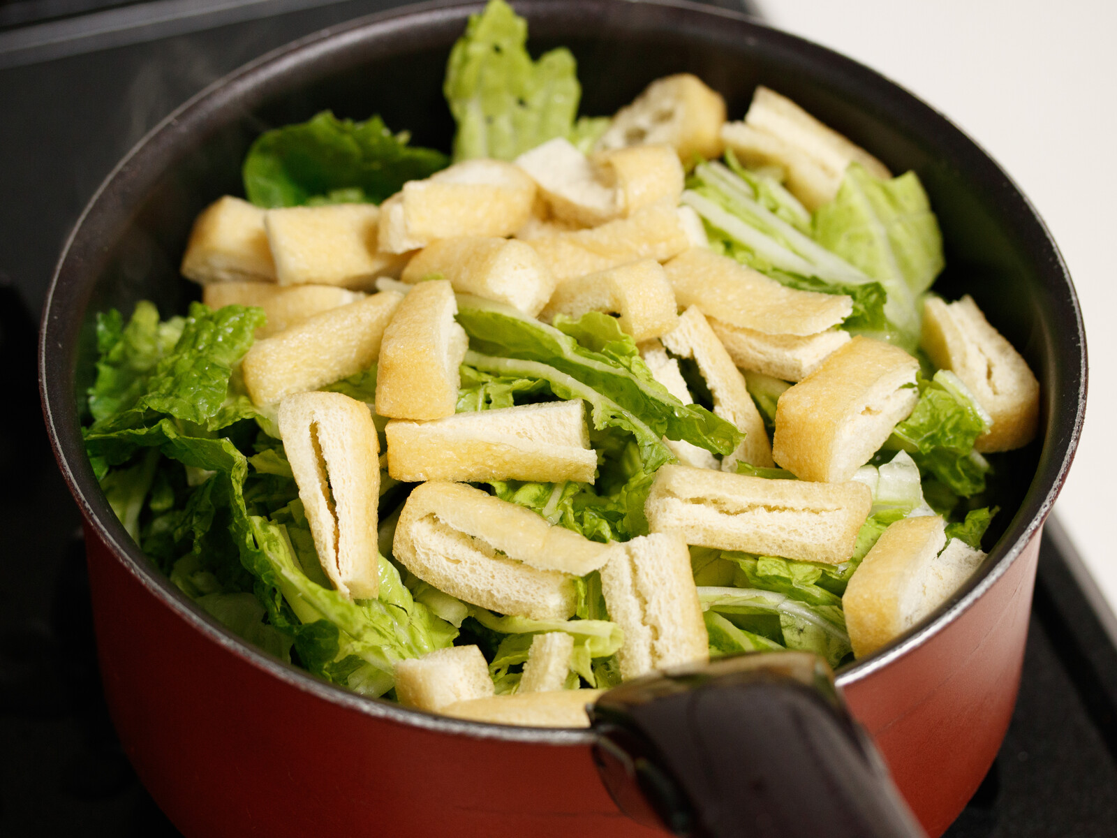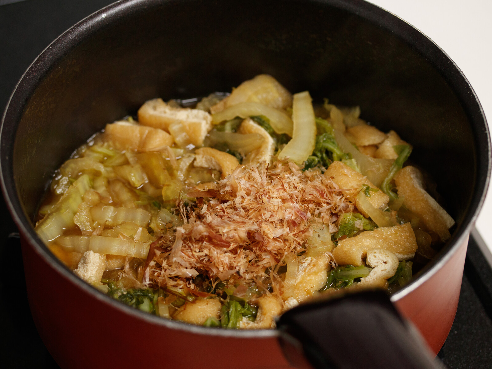『白菜と油揚げのじゃこポンおかか蒸し』