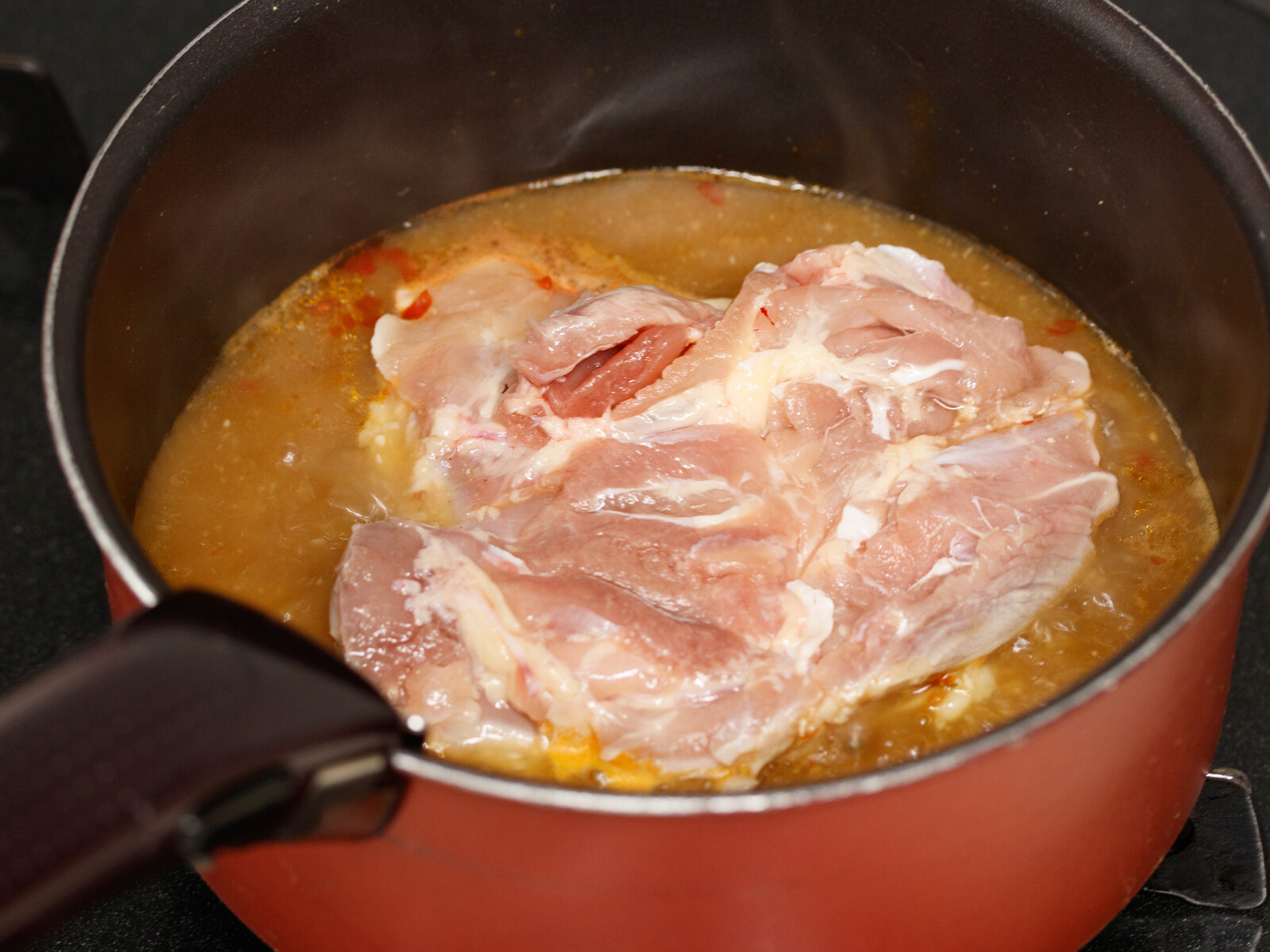 お肉をお鍋に放り込んで