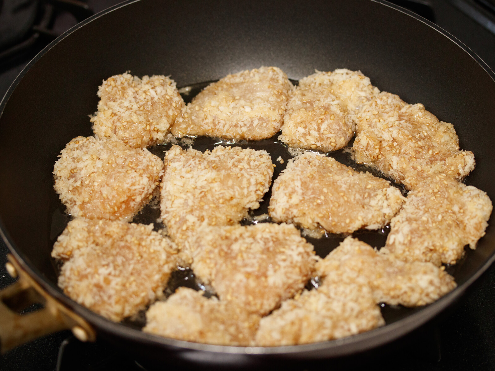 《むね肉のガーリック醤油パン粉焼き(チキンカツ風)》