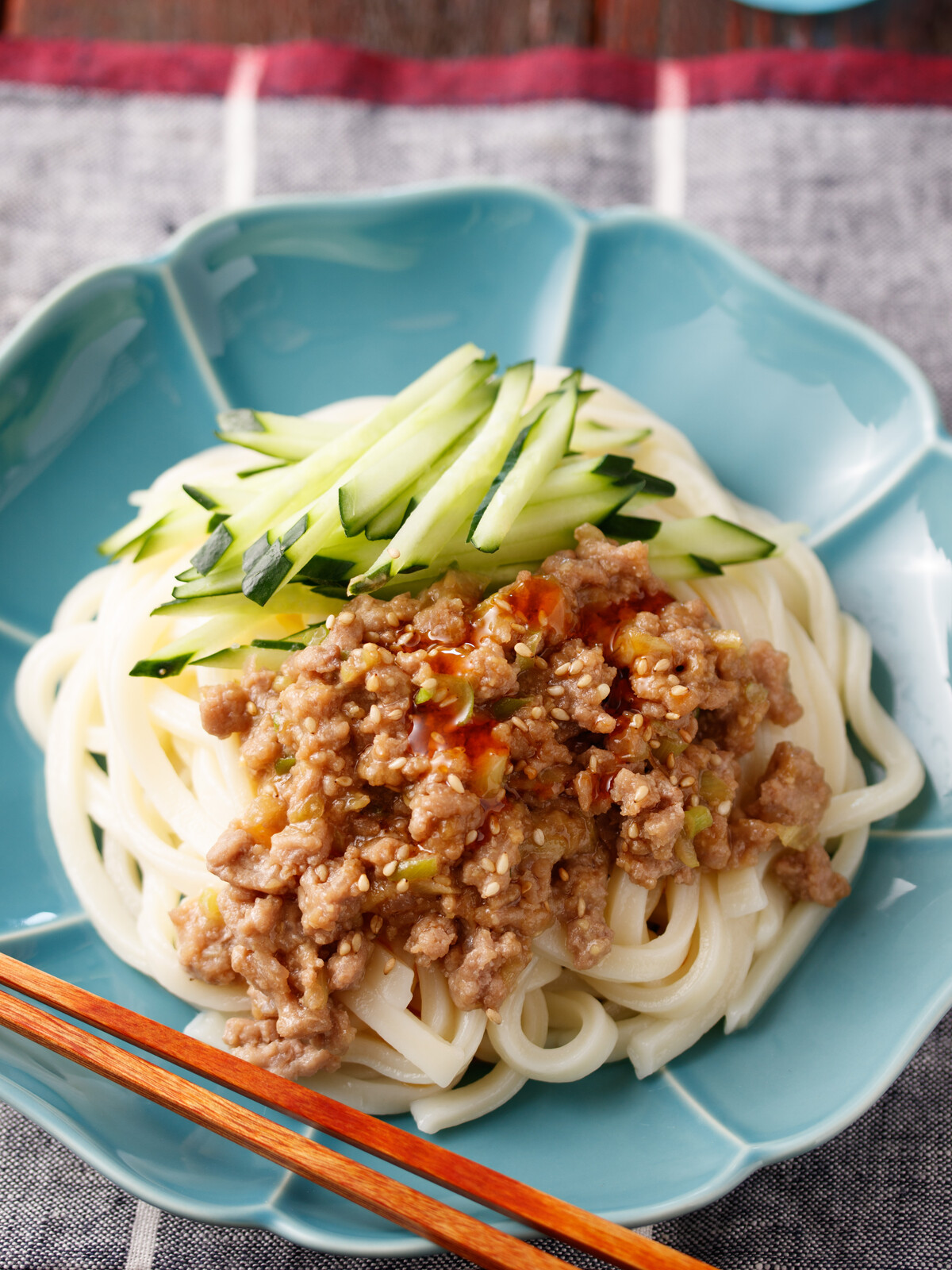 肉味噌は、水でのばして片栗粉でとろみをつけるので