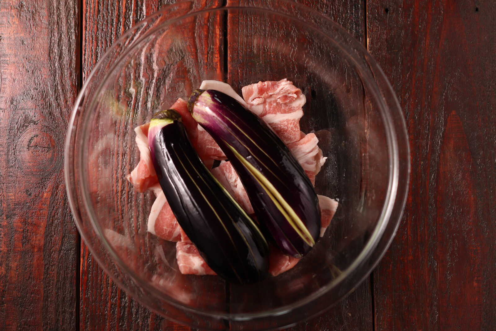 なすと豚は重ねてレンジでチンするだけ。