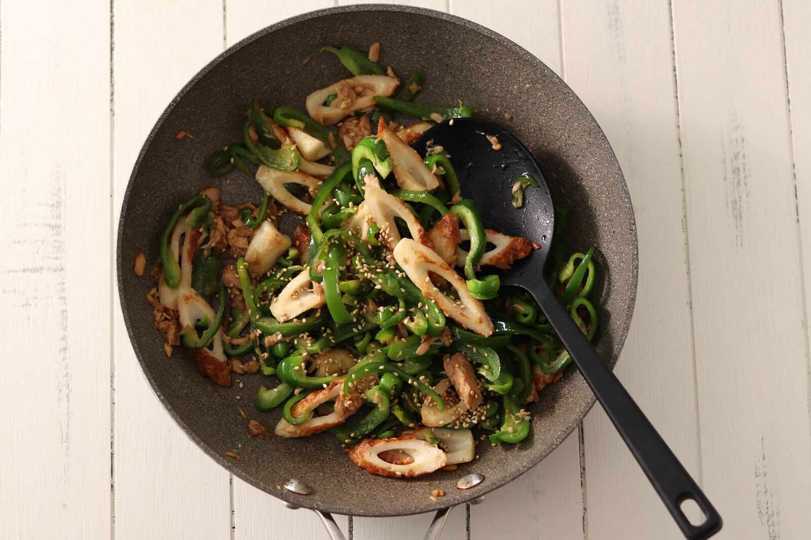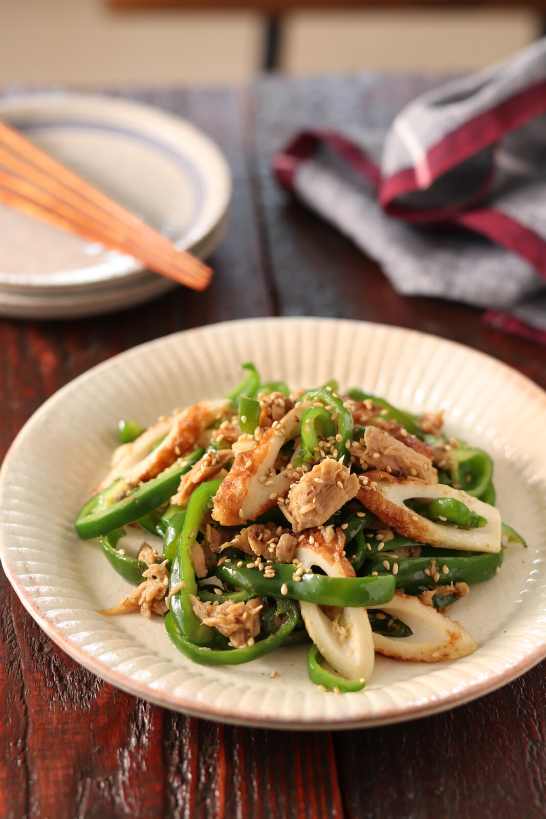 《ちくわとピーマンのツナごまきんぴら》