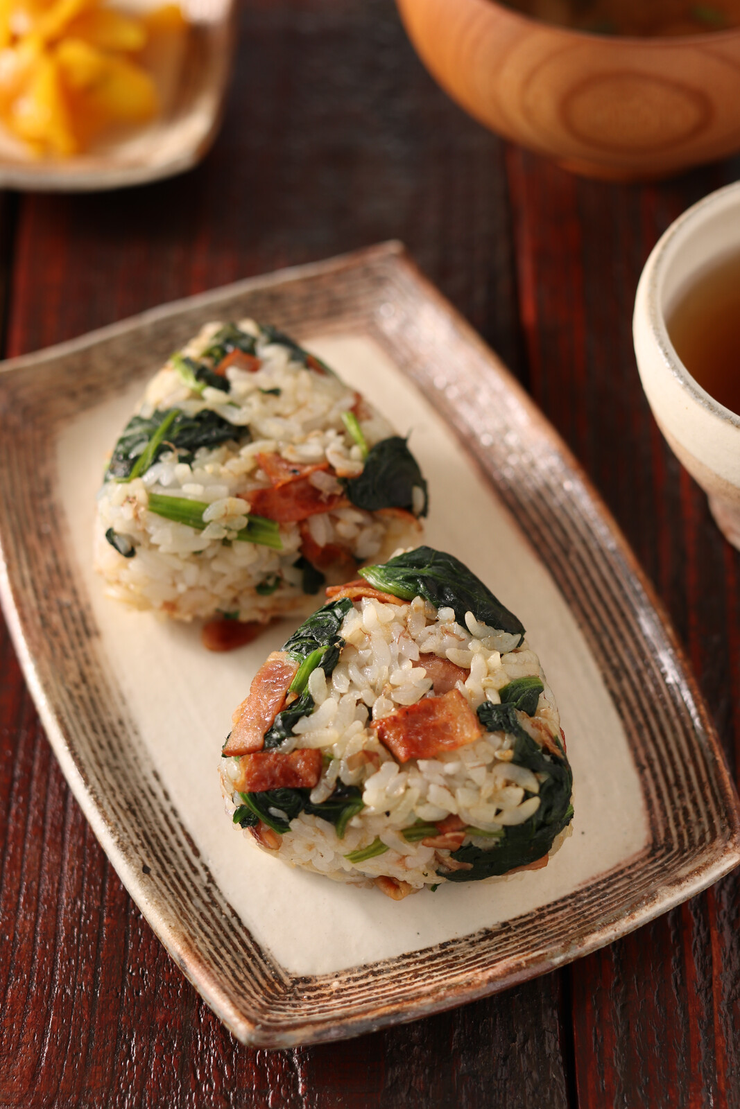《ほうれん草とカリカリベーコンのごちそうおにぎり》