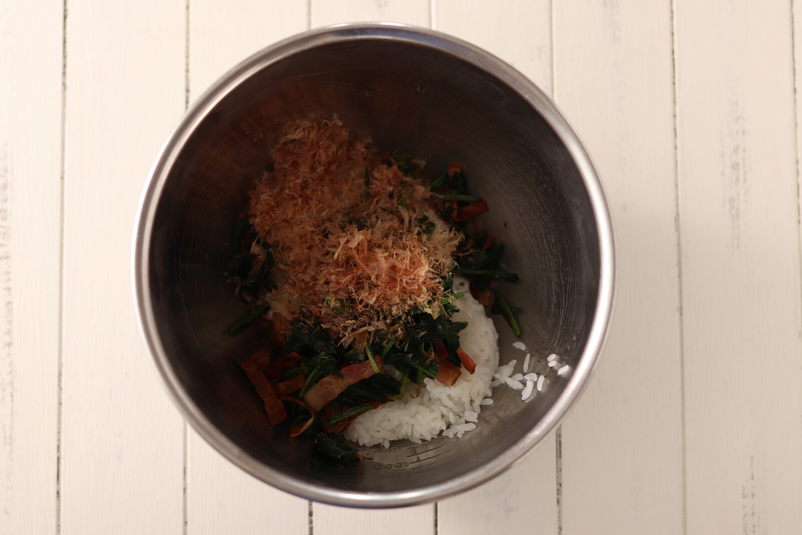 「ほうれん草とカリカリベーコンのごちそうおにぎり」