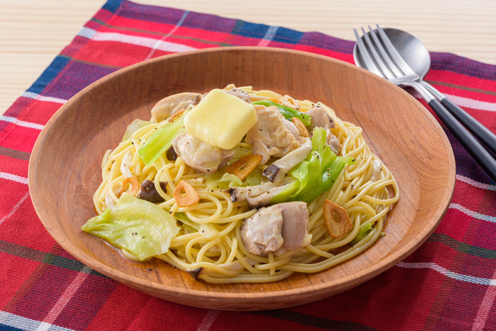 《鶏とキャベツとエリンギのうま塩パスタ》
