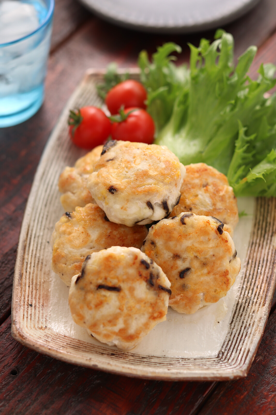 《むね肉とはんぺんの塩昆布チーズ焼き》