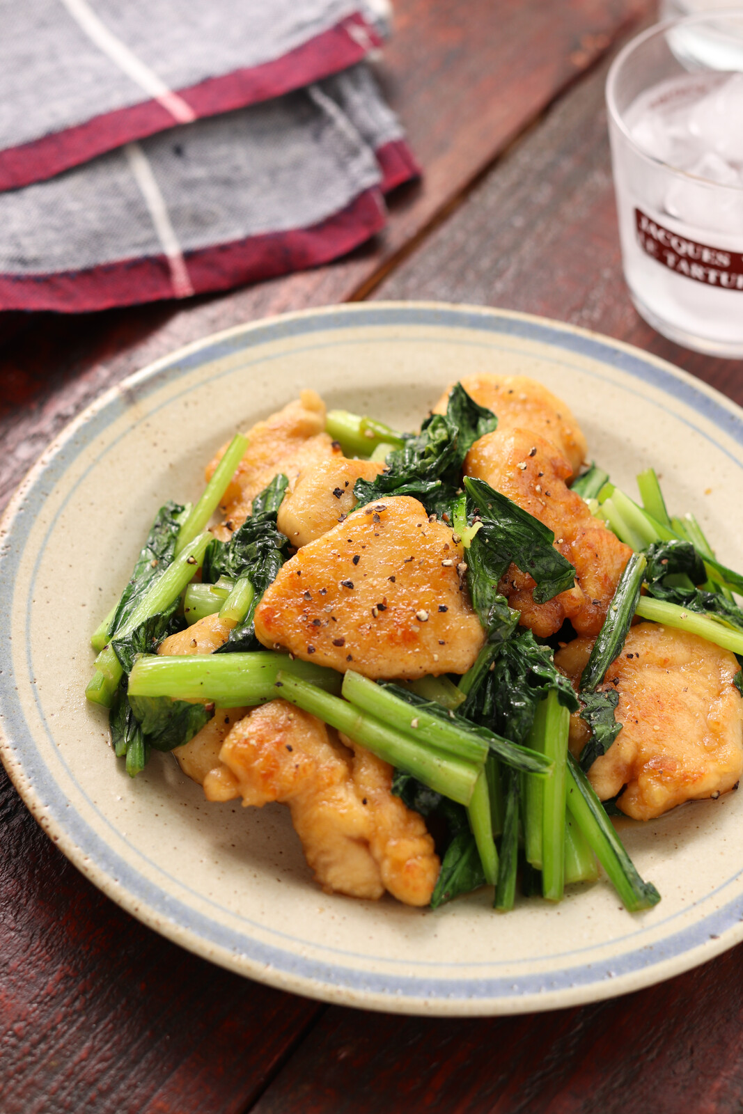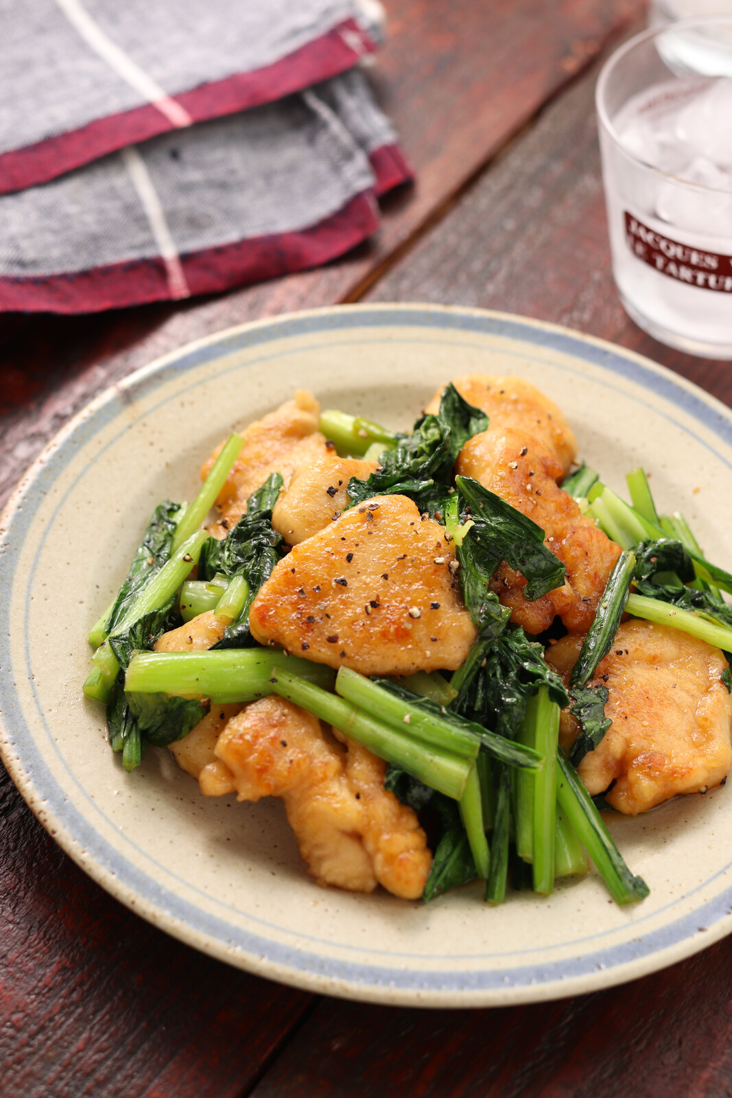 《むね肉と小松菜のガリバタ醤油ソテー》