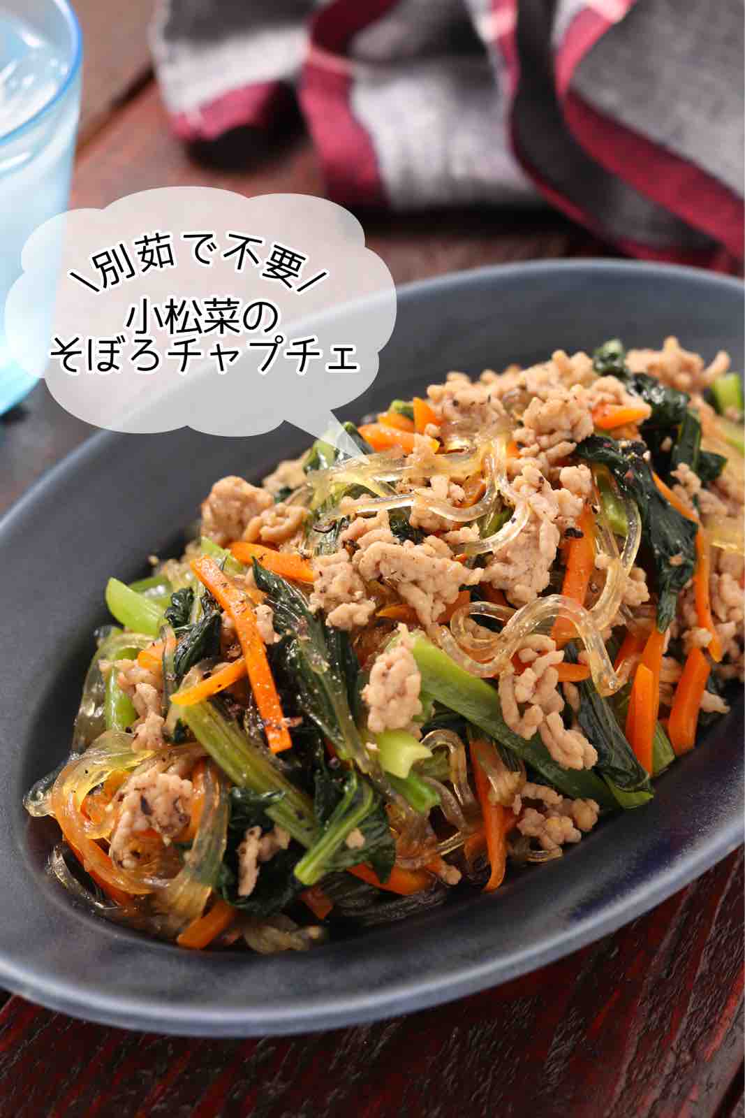 「小松菜のそぼろチャプチェ」