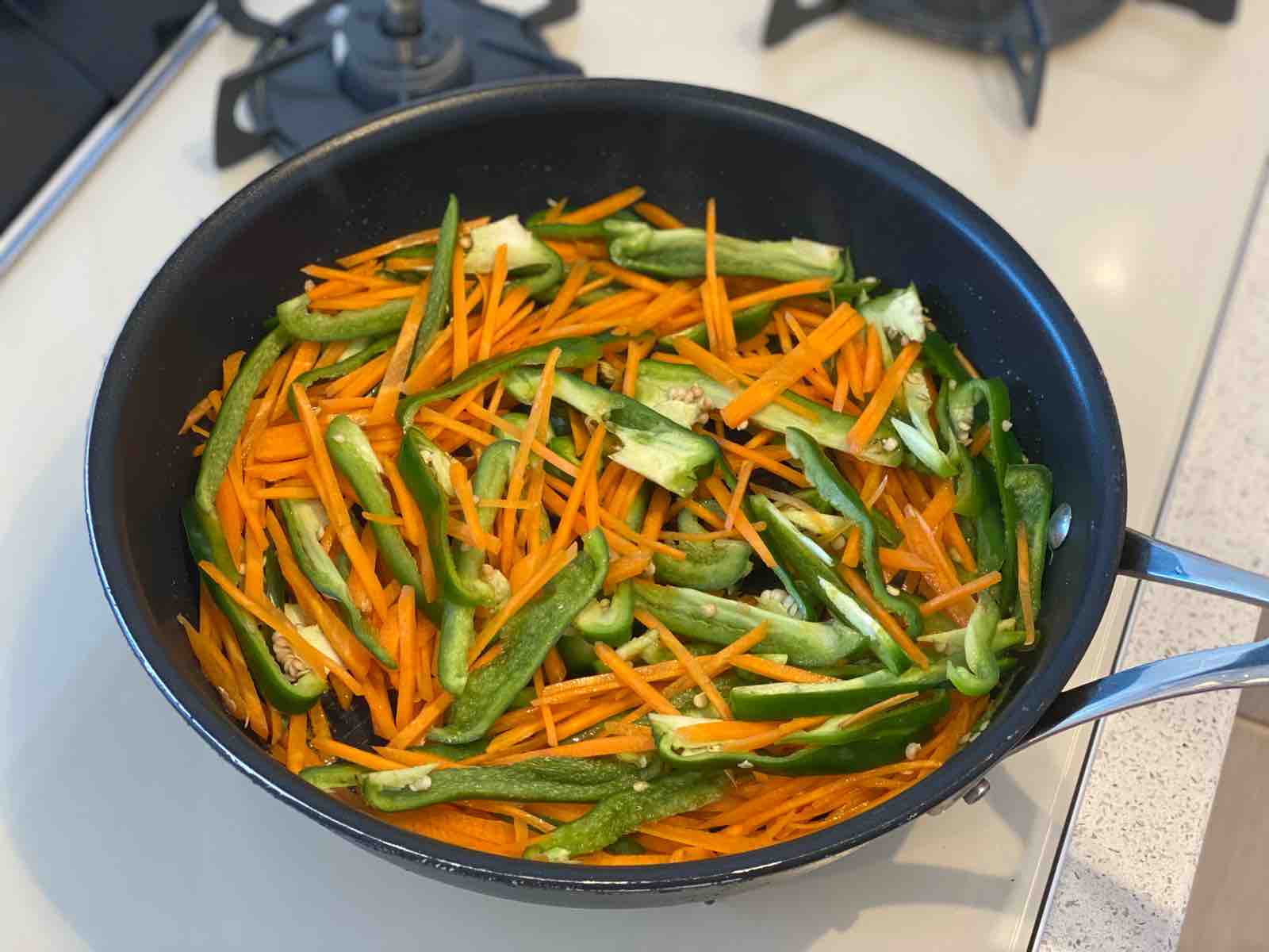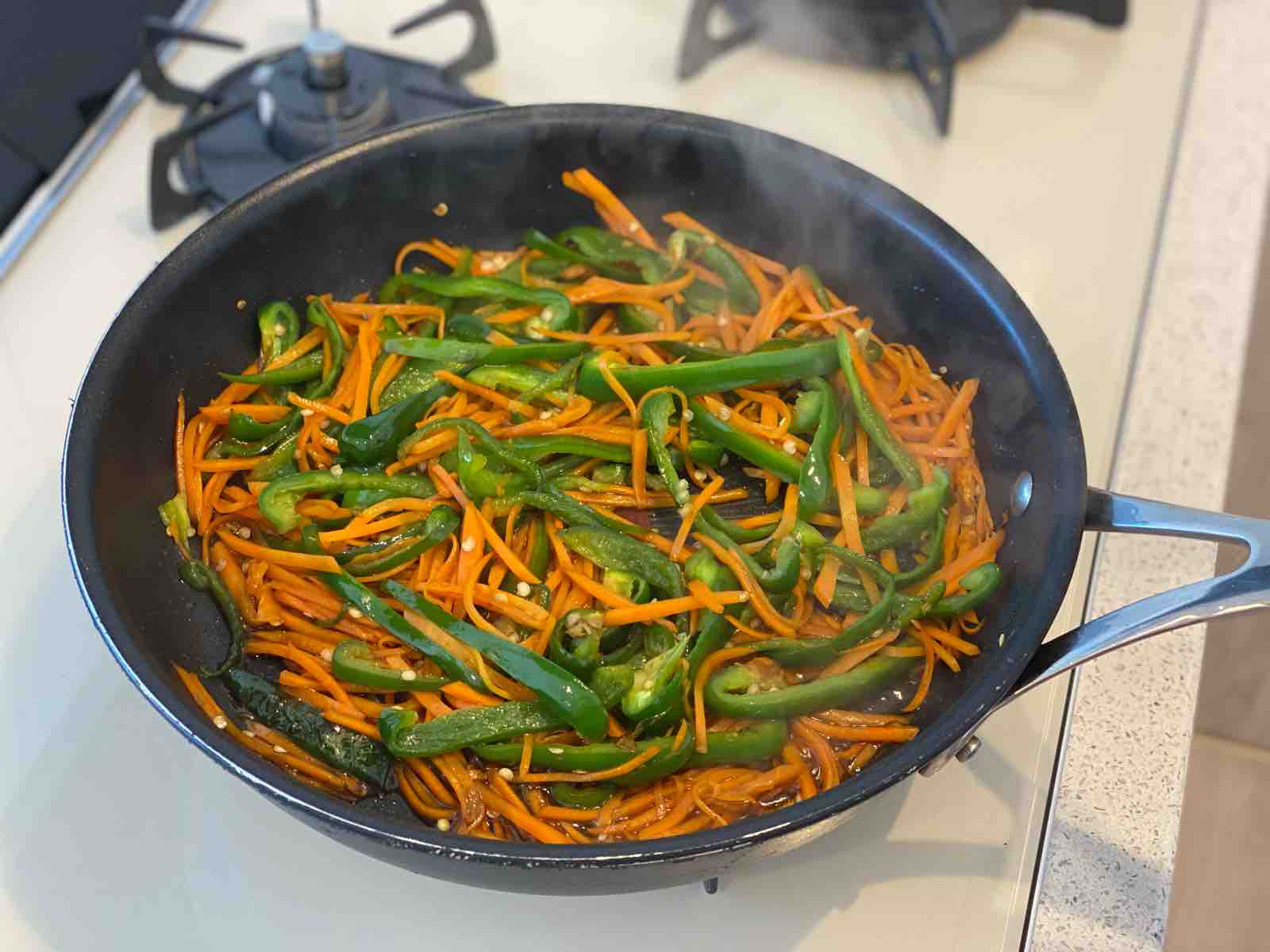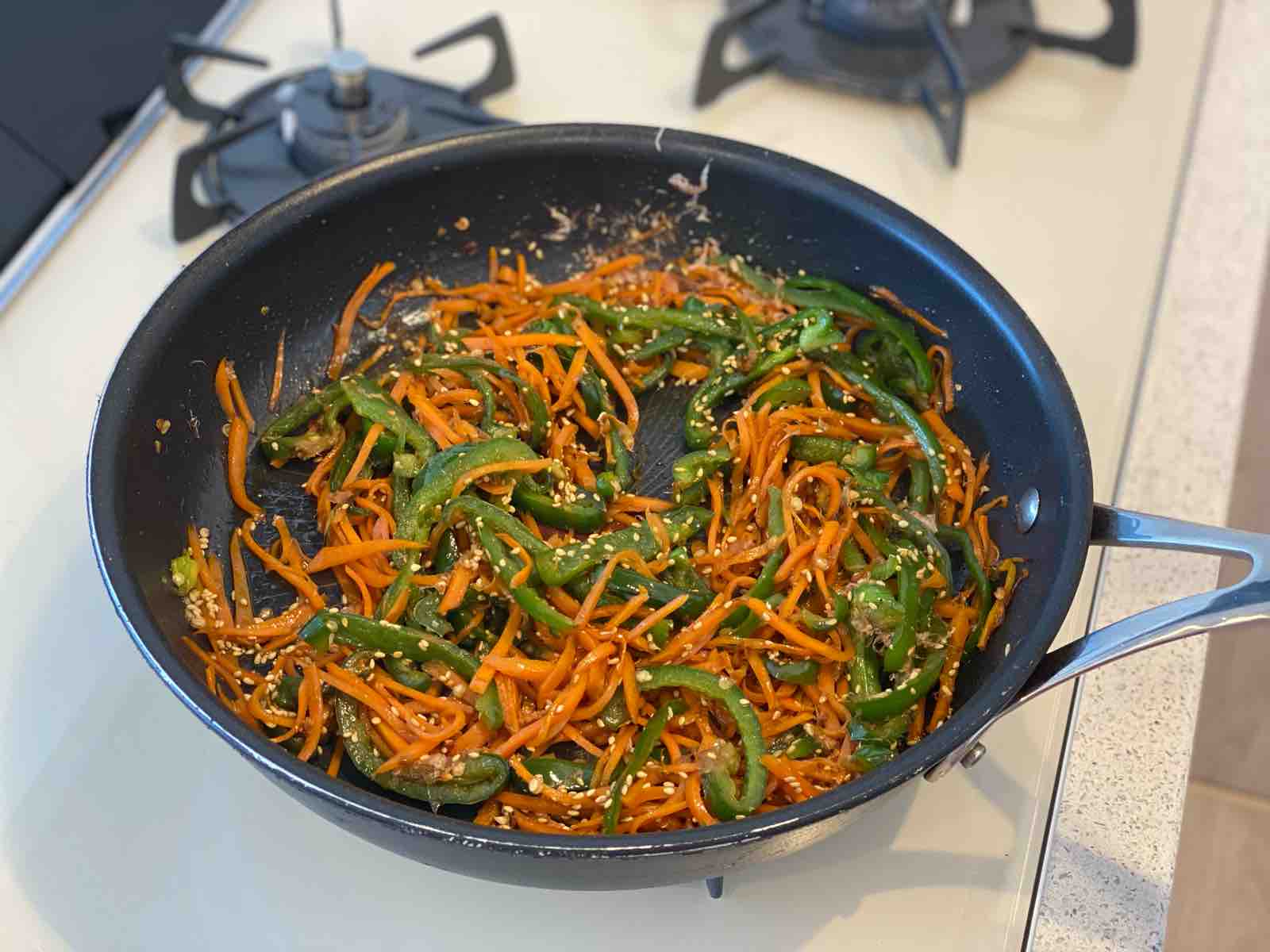「にんじんとピーマンのごまおかかきんぴら」