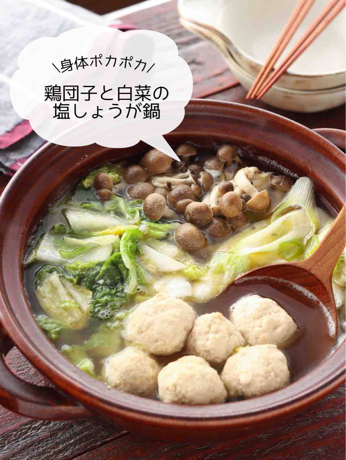 「鶏団子と白菜の塩しょうが鍋」