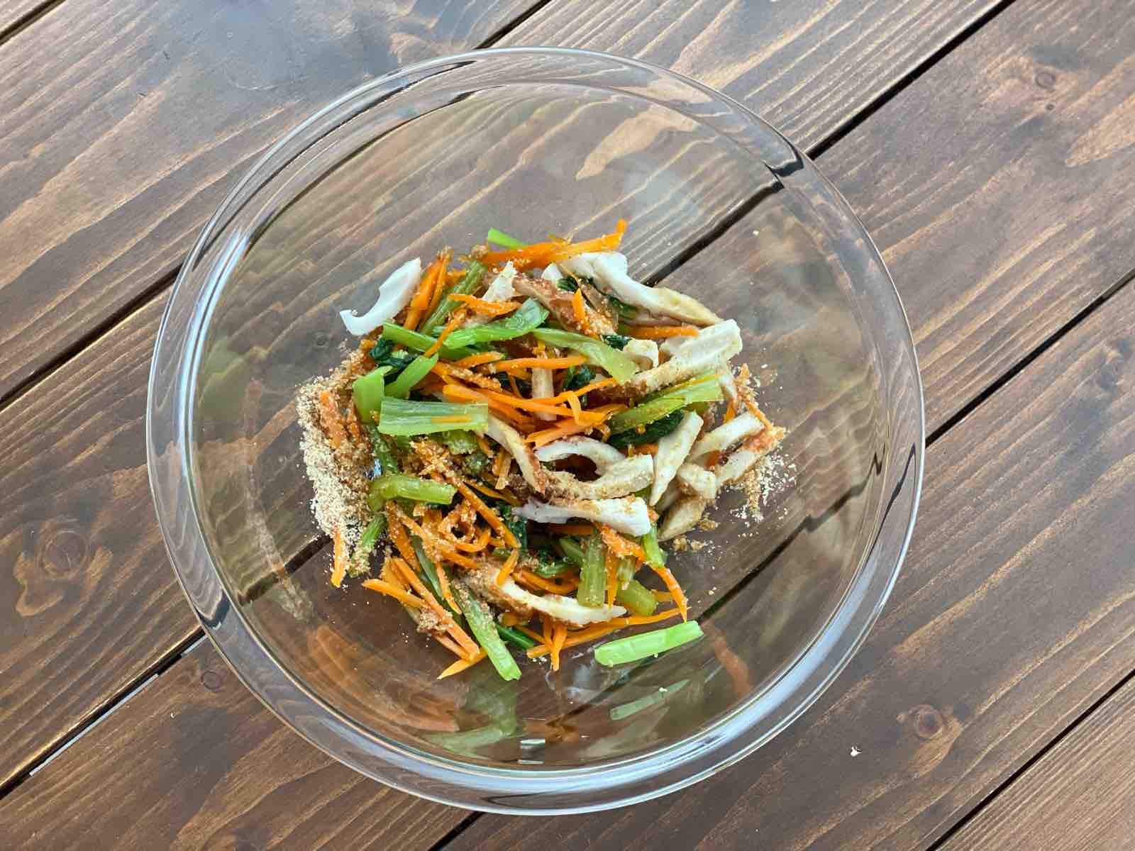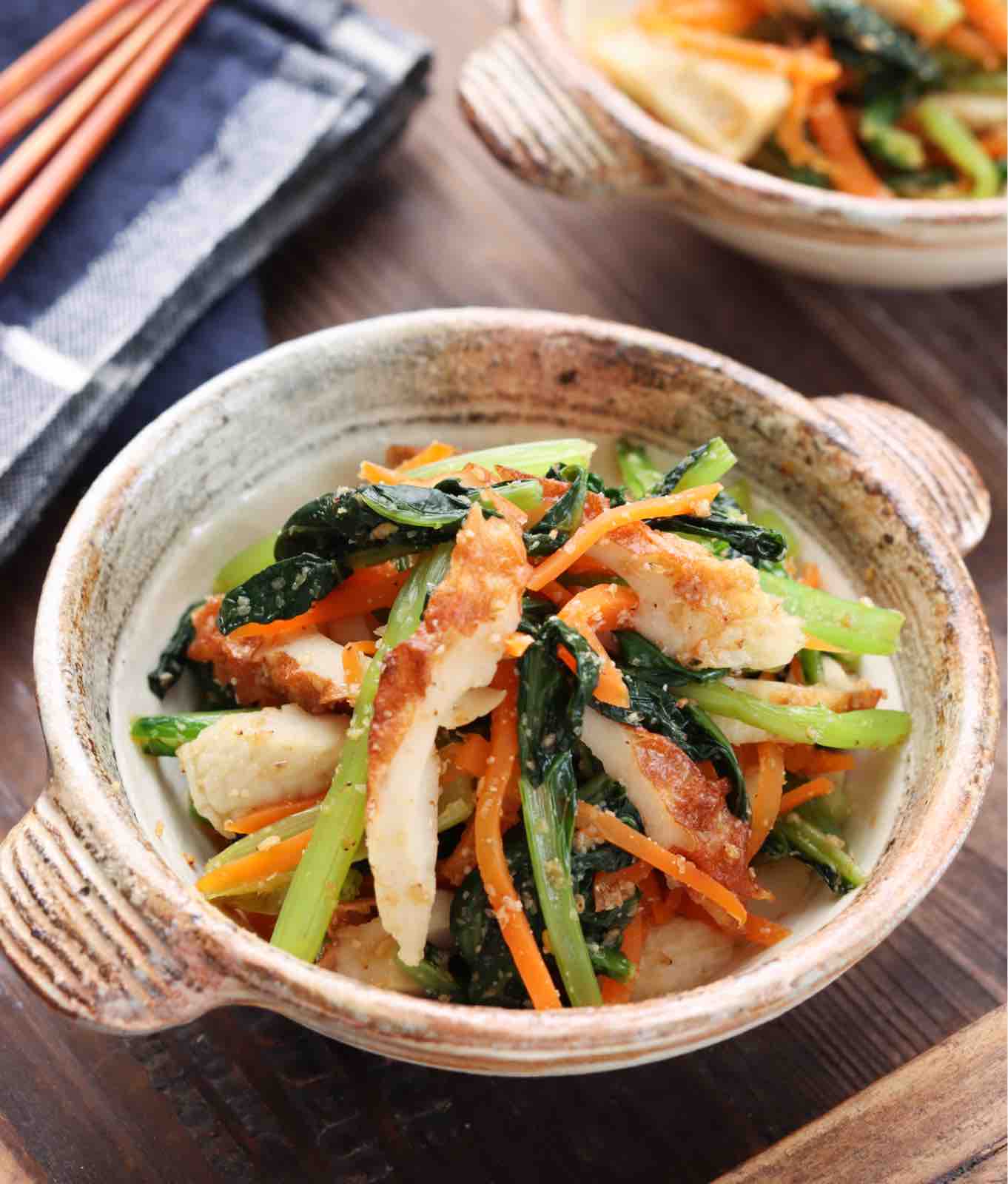 「小松菜とちくわのつゆごまあえ」