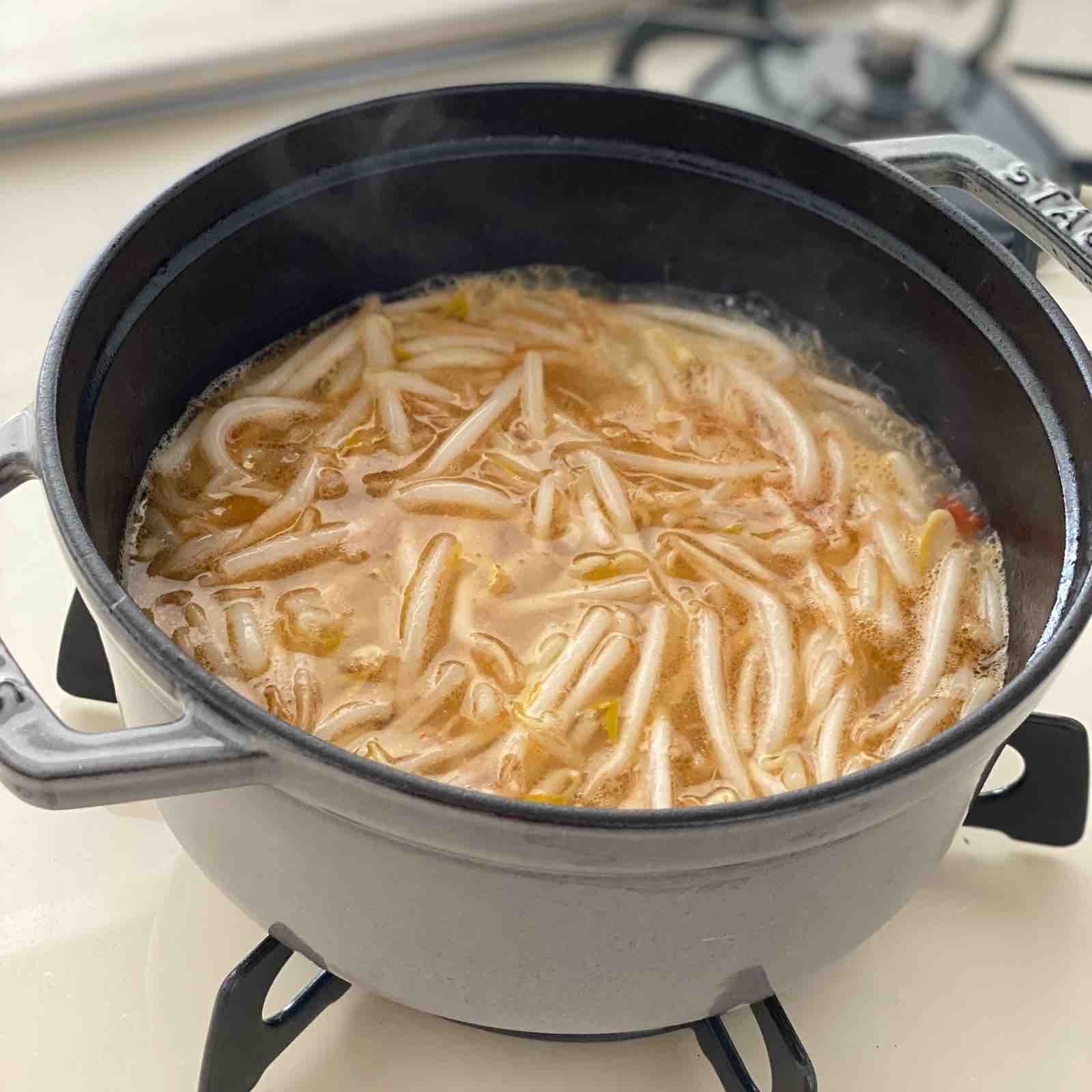 汁 物 •••▷ もやしの味噌ラーメン風スープ
