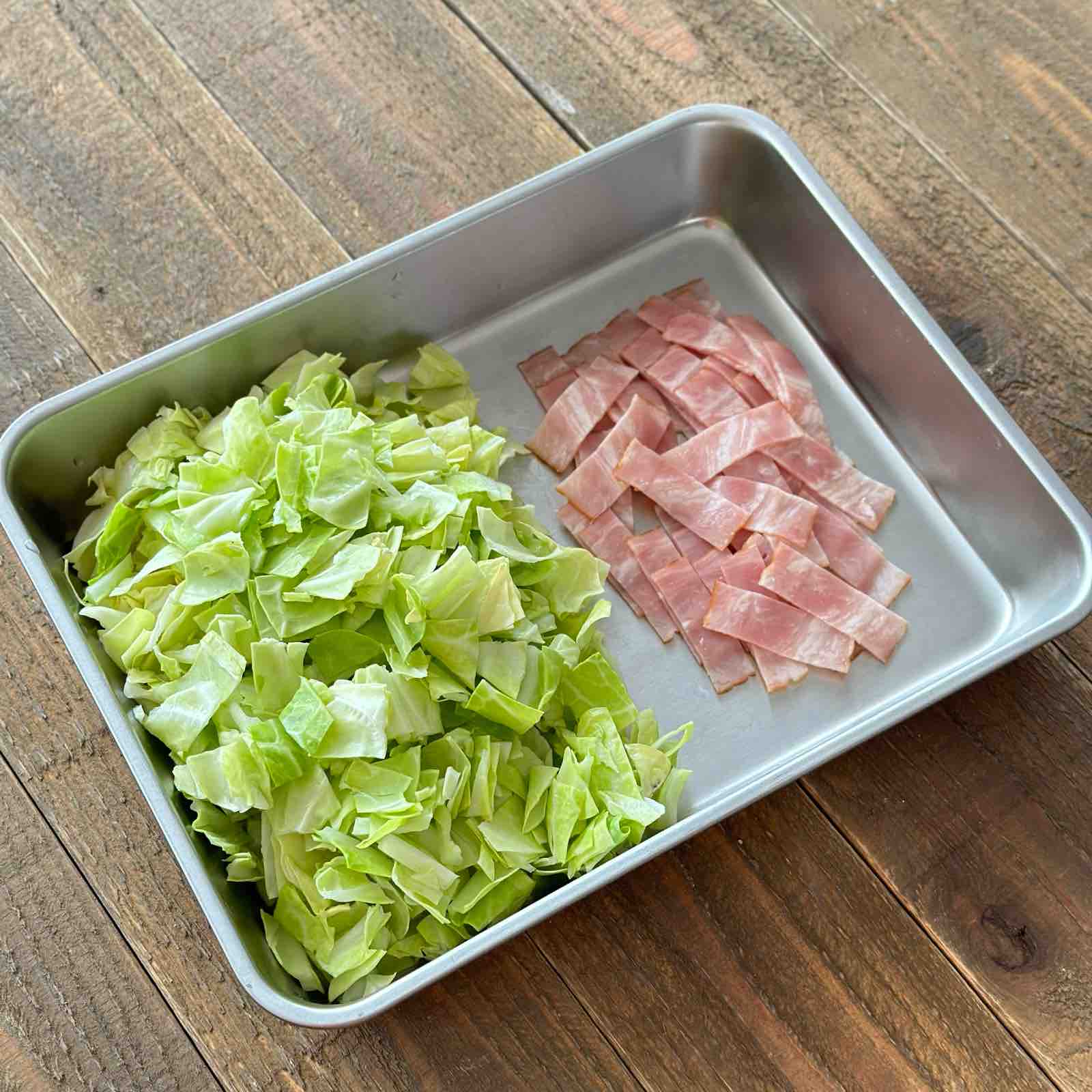 「キャベツのベーコンチーズ焼き」春キャベツが主役の