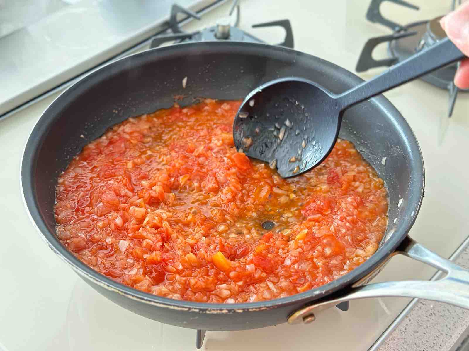 トマト缶をしっかり炒めることで