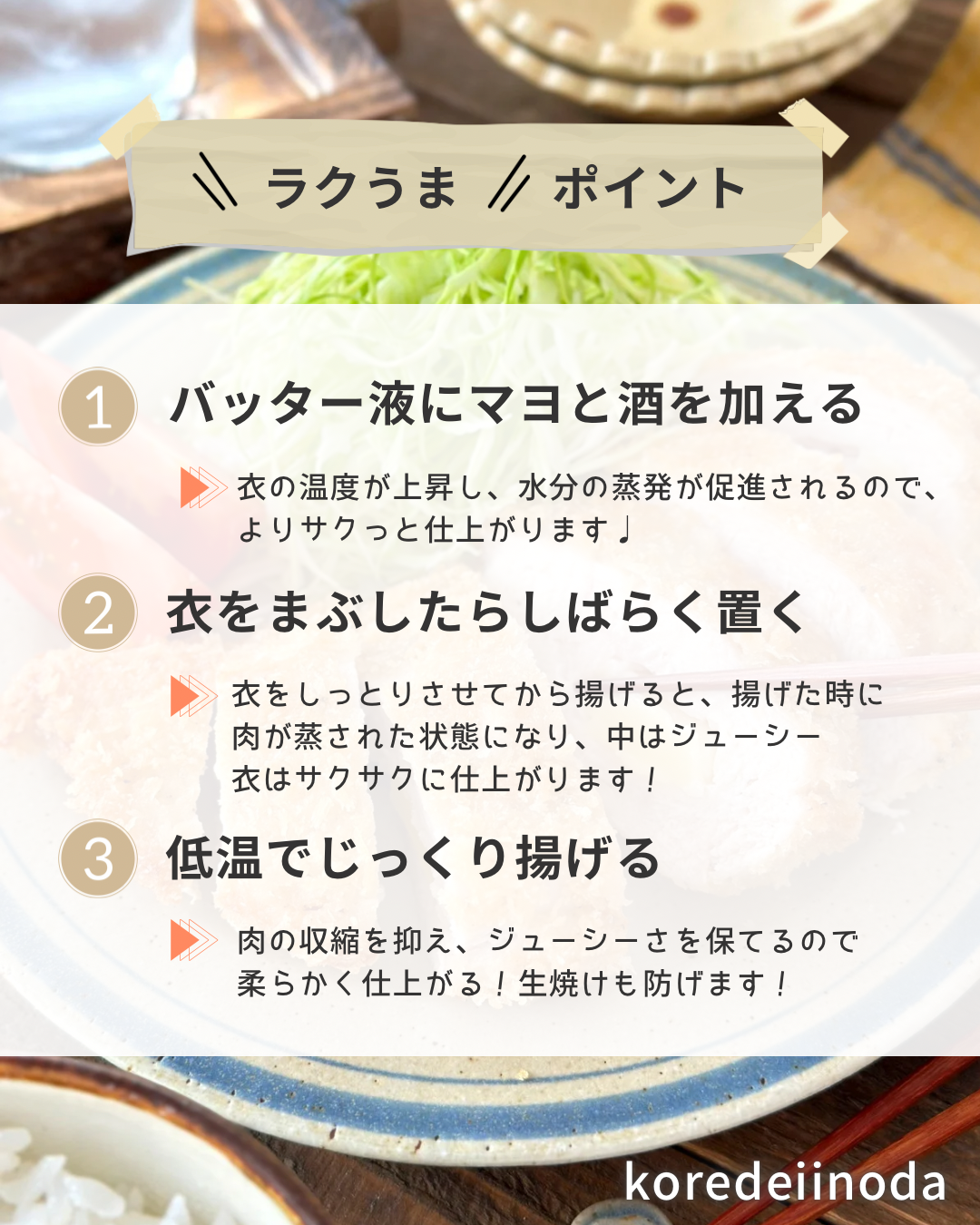 バッター液はマヨネーズと酒を加えることでサクサクに♩