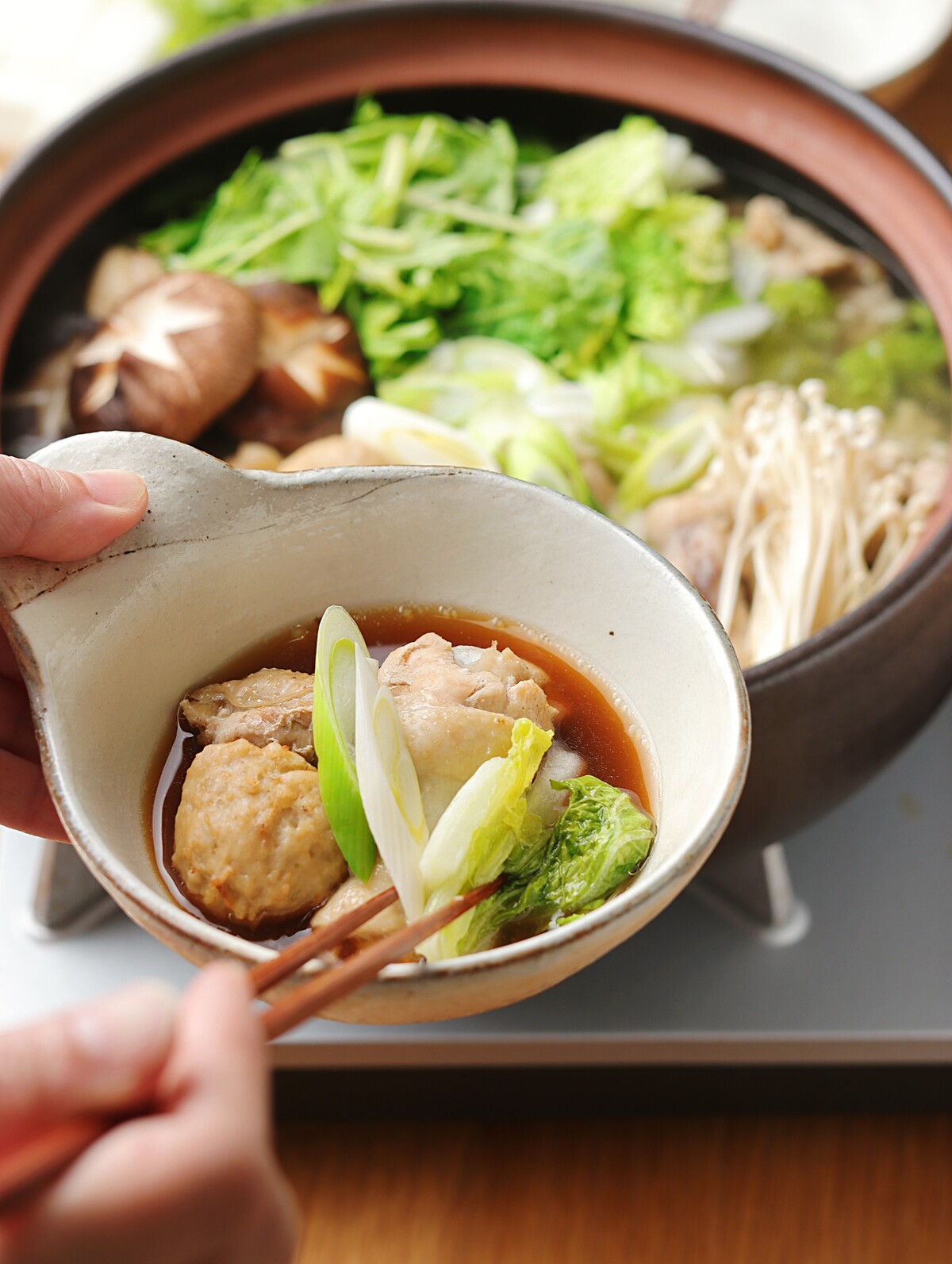 鶏団子 / 白菜 / 長ネギ /豆苗