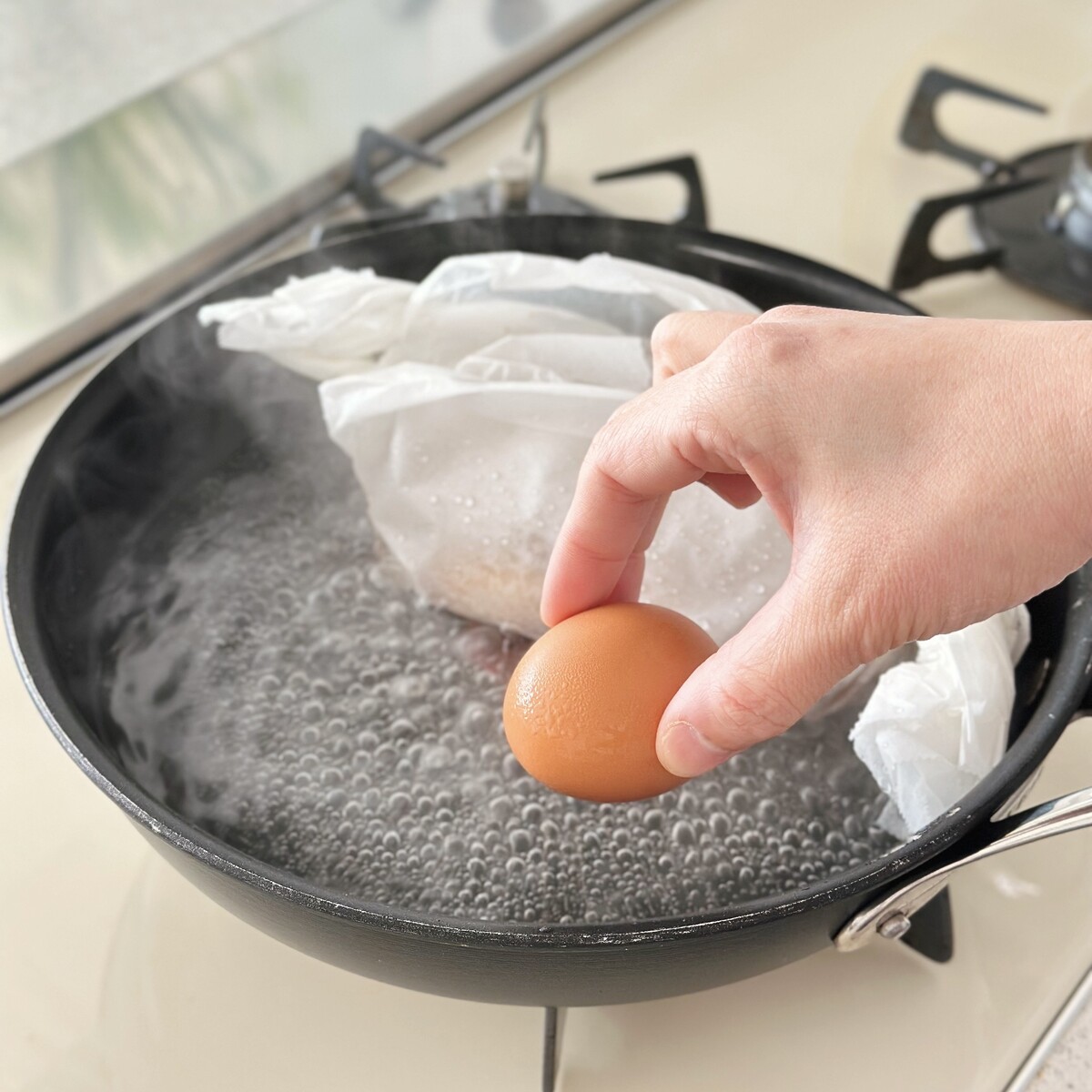 ❏ 卵は蒸らし3分で取り出すと半熟・10分で固茹でに
